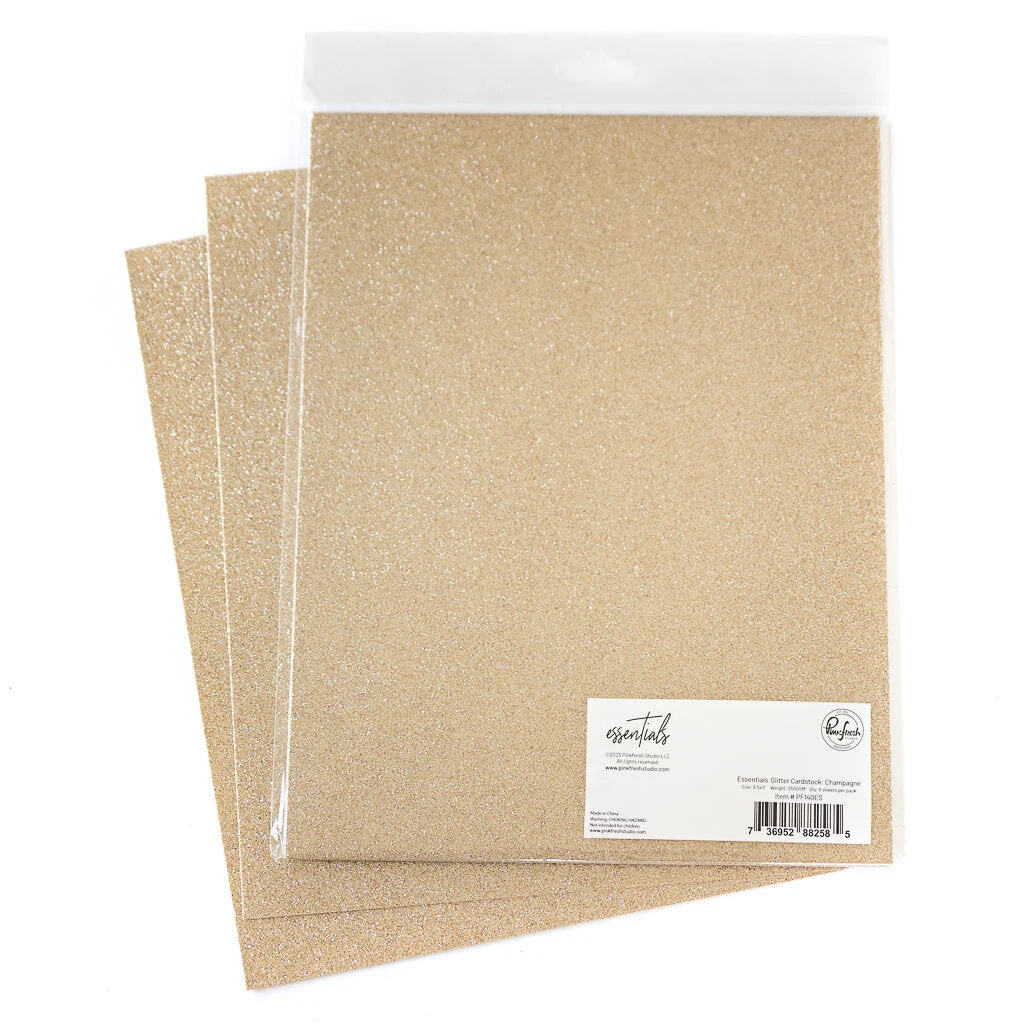 Pinkfresh Studio Essentials Glitter Cardstock 8.5″X11″ 6/Pkg – Champagne – Your paper crafting creations will sparkle & shine with our Champagne glitter cardstock pack! Our high quality 8.5 x 11 inches glitter cardstock is 250 gsm, non-shedding and easy to diecut. For more intricate dies, you may need to use a metal shim or the bubble mailer technique. You will get 6 sheets of glitter cardstock in this pac