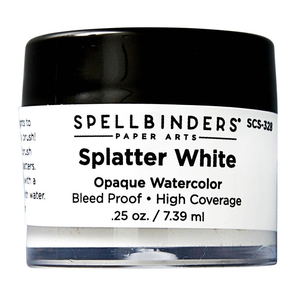 Splatter White Opaque Watercolor adds bright white splatter highlights to your projects with just a flick of a brush! Dip a wet brush into the jar to load and tap over an area of the project to create splatters. Let dry. Other uses are paint in highlights or use with a dip pen for lettering. Clean with water. Conforms to ASTM D-4236. Made in the USA. Approximate Size: 0.25 oz/7.39 ml