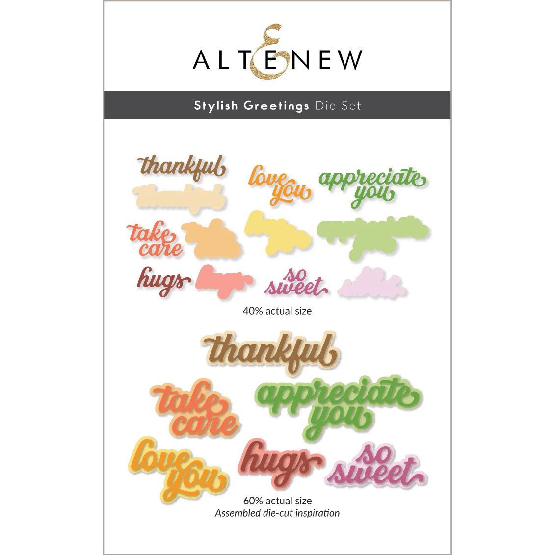 The Stylish Greetings Die Set features a popular customer-requested font, offering outlines and shadows for six versatile sentiments: “love you,” “take care,” “thankful,” “appreciate you,” “hugs,” and “so sweet.” Ideal for adding heartfelt messages to your handmade cards with precision and style.