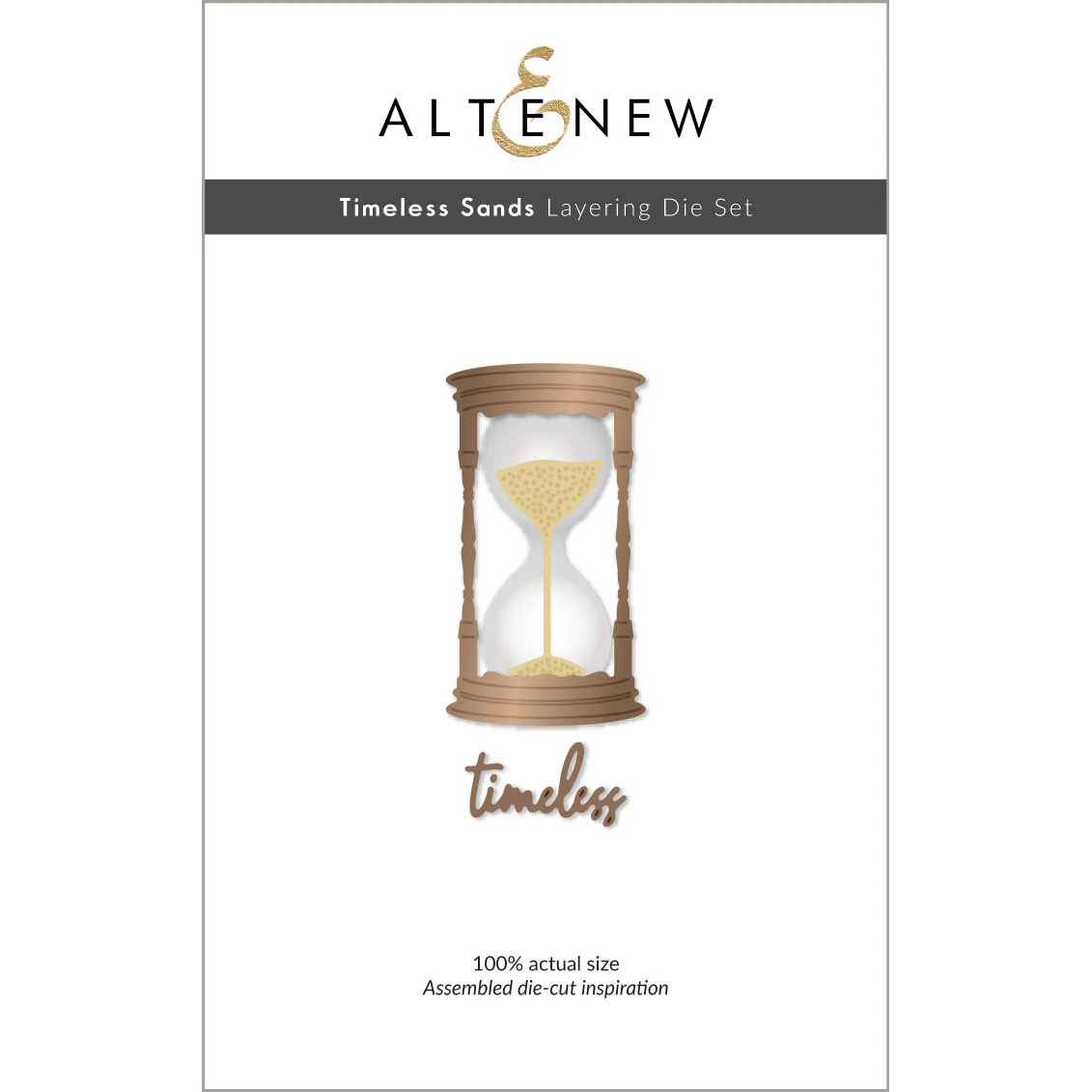 Die Dimensions: Assembled Hourglass: 1.4″ x 2.8″ ▪ Timeless: 1.1″ x 0.6″