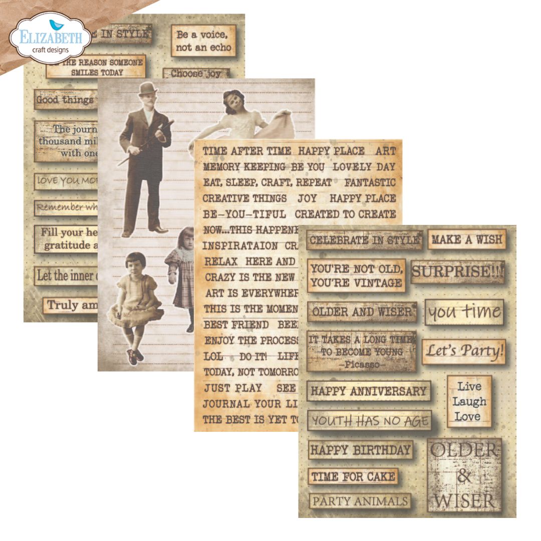 12 sheets of double-sided 12×12 Designer Cardstock including cut apart Journal, Tags and Element Sheets 12×12 Cardstock Sticker Sheet with 51 stickers; 63 pieces